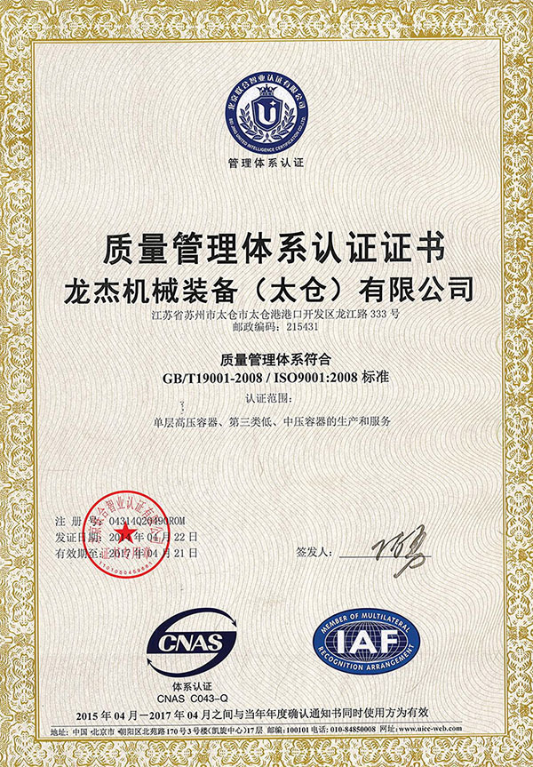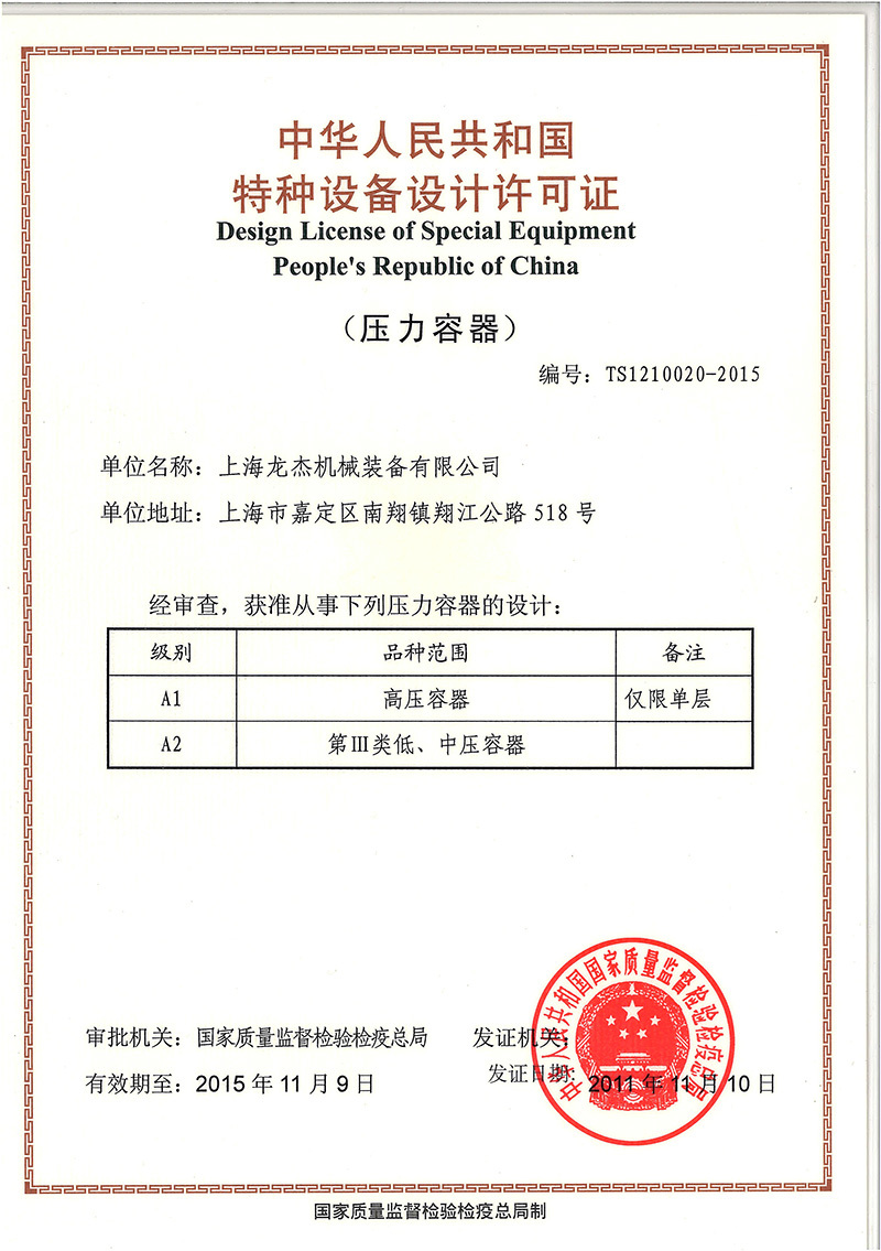 上海龍杰機(jī)械裝備有限公司是國家認(rèn)證頒發(fā)的一、二、三類(A1、A2)高壓非標(biāo)容器和美國ASME設(shè)計(jì)、制造企業(yè),也是中石油、中石化定點(diǎn)的石油、化工裝備的制造基地。
