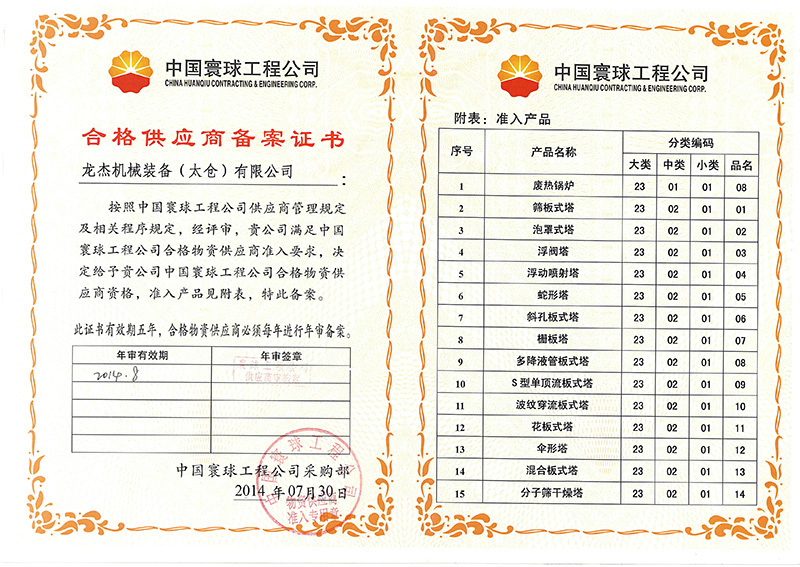 龍杰機(jī)械先后為中石油、中石化、中海油、神華寧煤、中煤集團(tuán)、國家能源集團(tuán)、煙臺(tái)萬華集團(tuán)、恒力石化、恒逸石化、永榮集團(tuán)、晉煤集團(tuán)、心連心化工集團(tuán)、昊源化工、浙石化、裕龍石化等知名企業(yè)的煤制氣、煤制烯烴、煤制乙二醇、煤制芳烴、聚乙烯、聚丙烯、環(huán)己酮、己內(nèi)酰胺、合成氨、尿素、變換、凈化、脫硫、甲醇、二甲基亞砜、硫酸、硝酸、硝銨等項(xiàng)目(裝置)成功提供了多臺(tái)主體換熱器、各類塔器、反應(yīng)器等過程裝備。